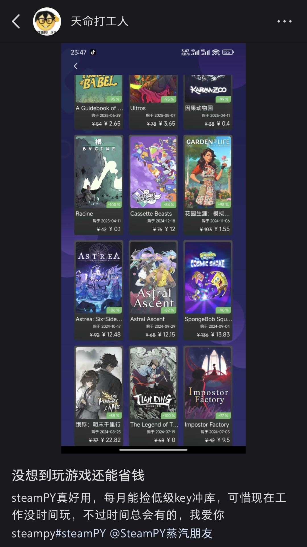 于小红书或抖音平台发布内容,并附上话题标签#steampy,我们将从中挑选优质内容,随机向发布用户赠送出【随机游戏CDK】或【PY5~50元随机国区CDK无门槛优惠券兑换码】