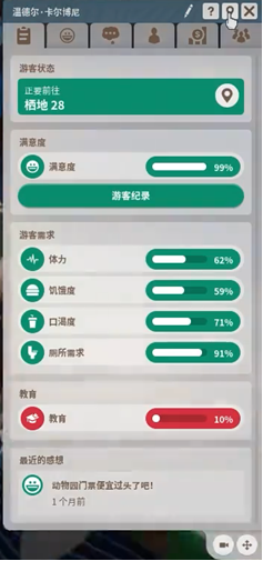 游戏不仅关乎创造,更考验玩家平衡与管理。玩家需统筹动物福利、游客满意度与园区财政,确保动物园健康发展。而游戏内独特的“保育点”系统(通过放生动物获取)则深化了游戏保护野生动物的核心理念,与当下保护动物的主流思想不谋而合。