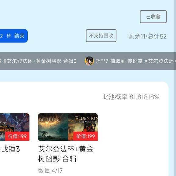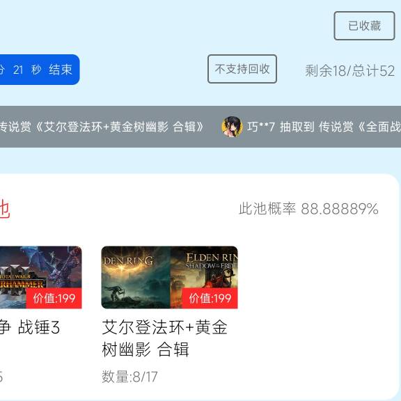 是那个法环合集199大盒吧,本来前21发里8个2077和8个法环合集,盒主少赚一两百,花在7中1,直接亏1200
