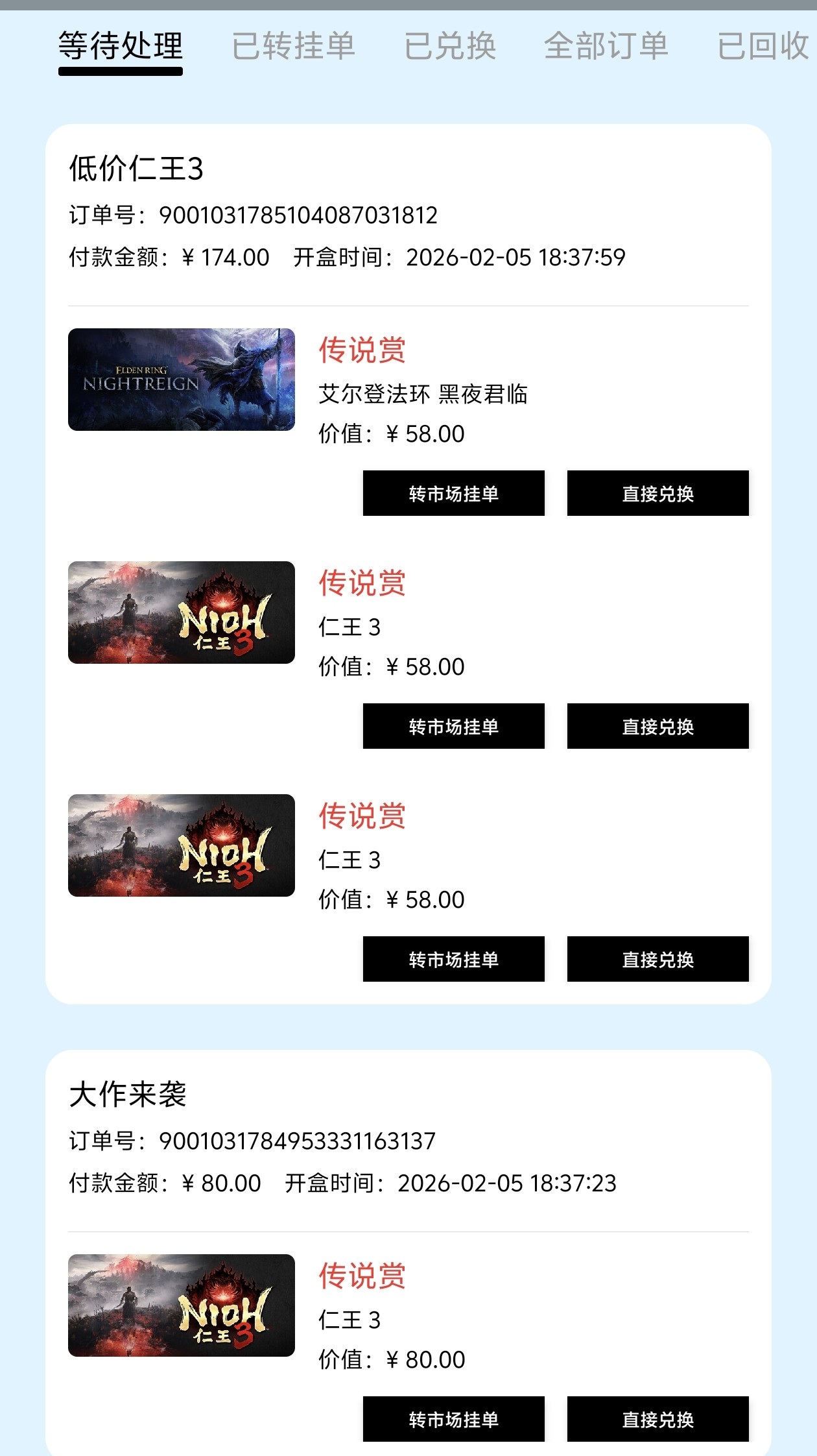 哦还有一个仁王3,现在又有人抽了,记录里就只剩下一个仁王3了