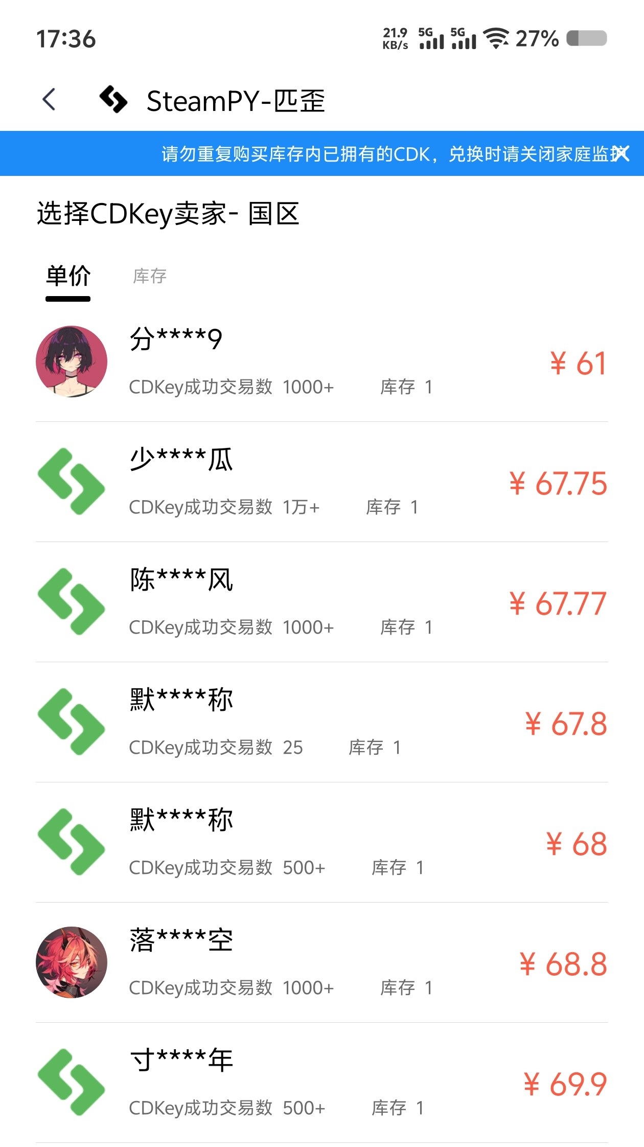 还有哪位兄弟抽的key没卖,抓紧卖了吧