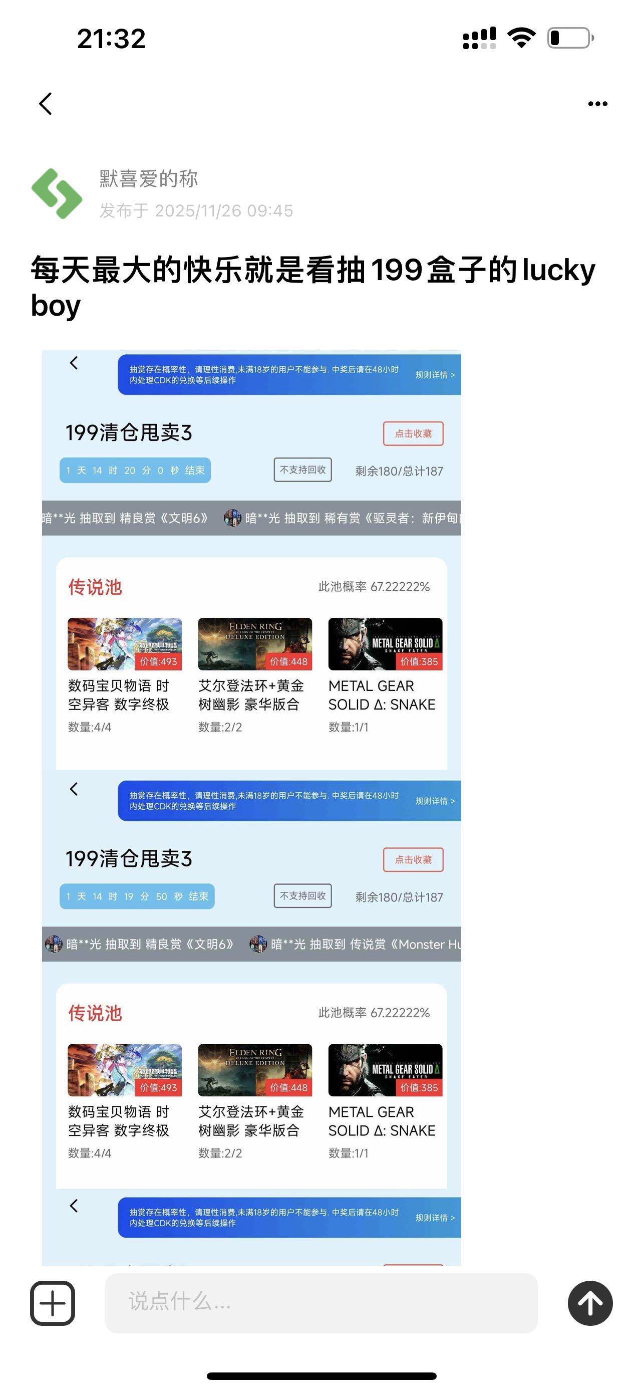 我之前也见过一个,超低概率的垃圾那哥们连中一堆