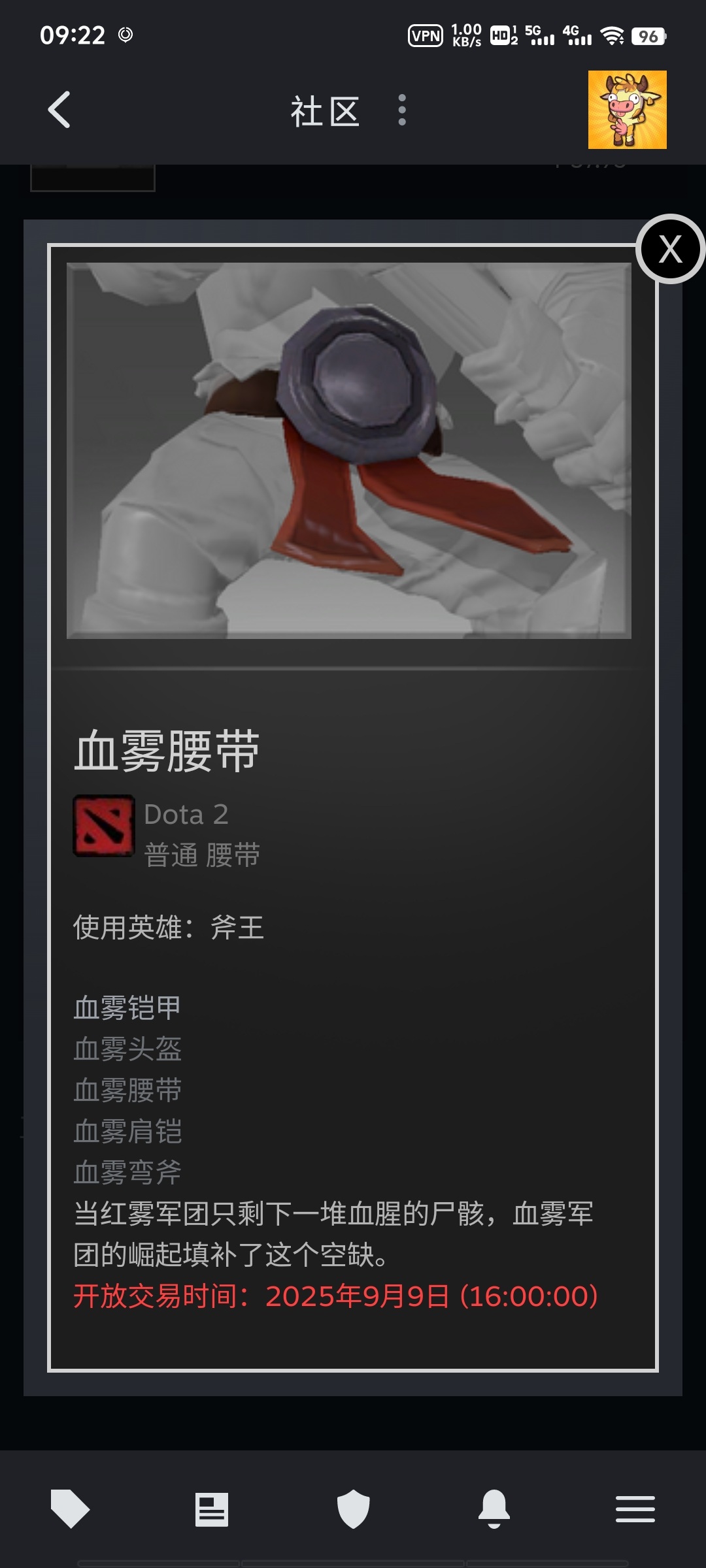 我去,还真是,刚点到steam市场里显示9月9号才能开放交易,我服了