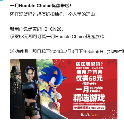 Humble2月月包折扣码来了!